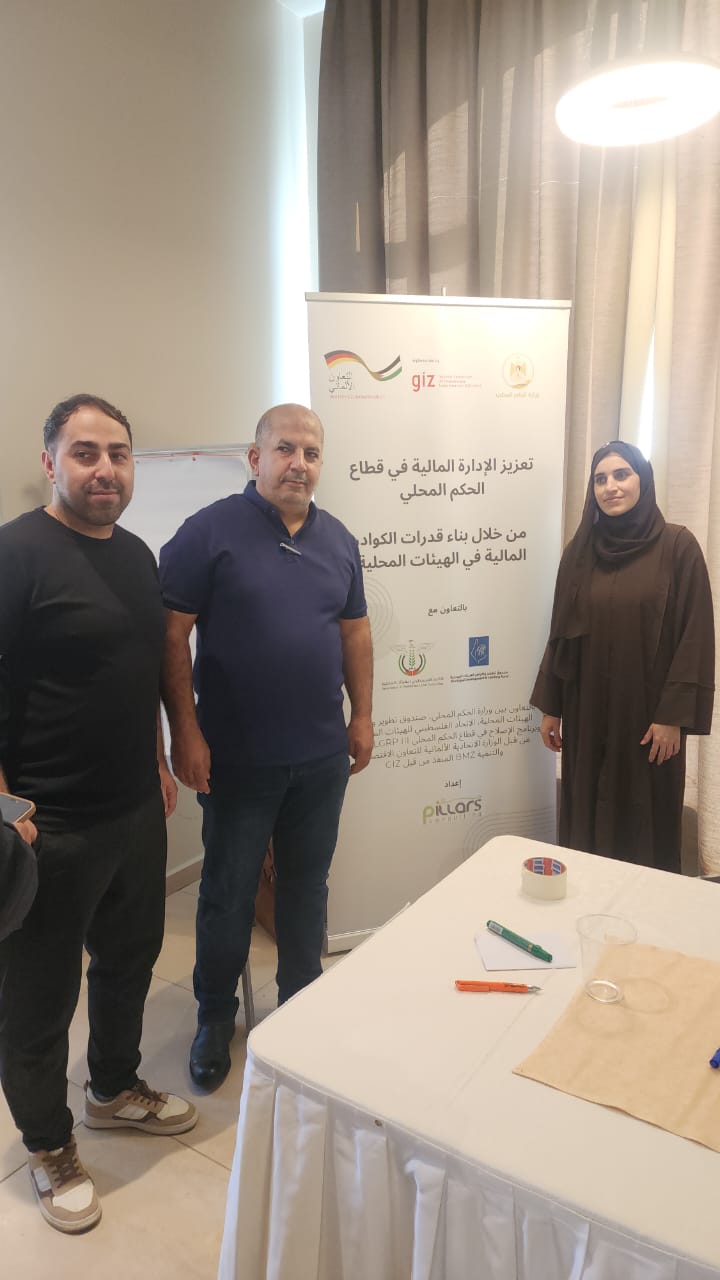 شاركت بلدية صوريف، ممثّلة بطاقم الدائرة المالية: محمد برادعية المدير المالي، وميساء عرعر رئيس قسم المحاسبة، ووسام الحيح أمين الصندوق الرئيسي، في ورشة العمل التدريبية التي عقدتها الإدارة العامة للتوجيه والرقابة والموازنات بالتعاون مع دائرة التدريب في وزارة الحكم المحلي، والمخصصة للعاملين في المجال المالي في الهيئات المحلية في مختلف محافظات الضفة الغربية، وذلك بدعم من مؤسسة التعاون الألماني GIZ من خلال برنامج LGRP III.